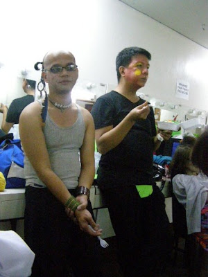 last minute choreography changes. i love, love, love the theater arts students who helped us with the choreography, direction, and makeup. these guys kick ass.